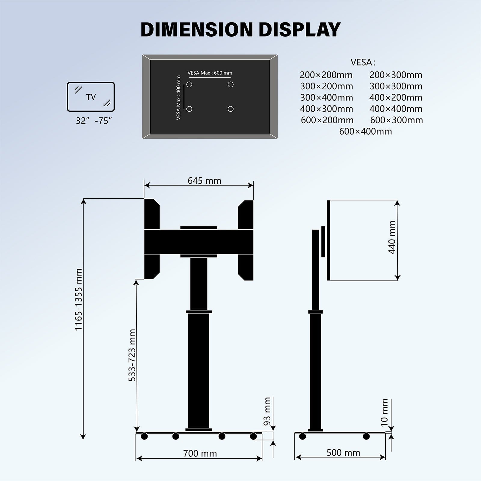 XTRARM Proton 100 mobiler TV Ständer Schwarz - mobiler höhenverstellbarer TV-Ständer