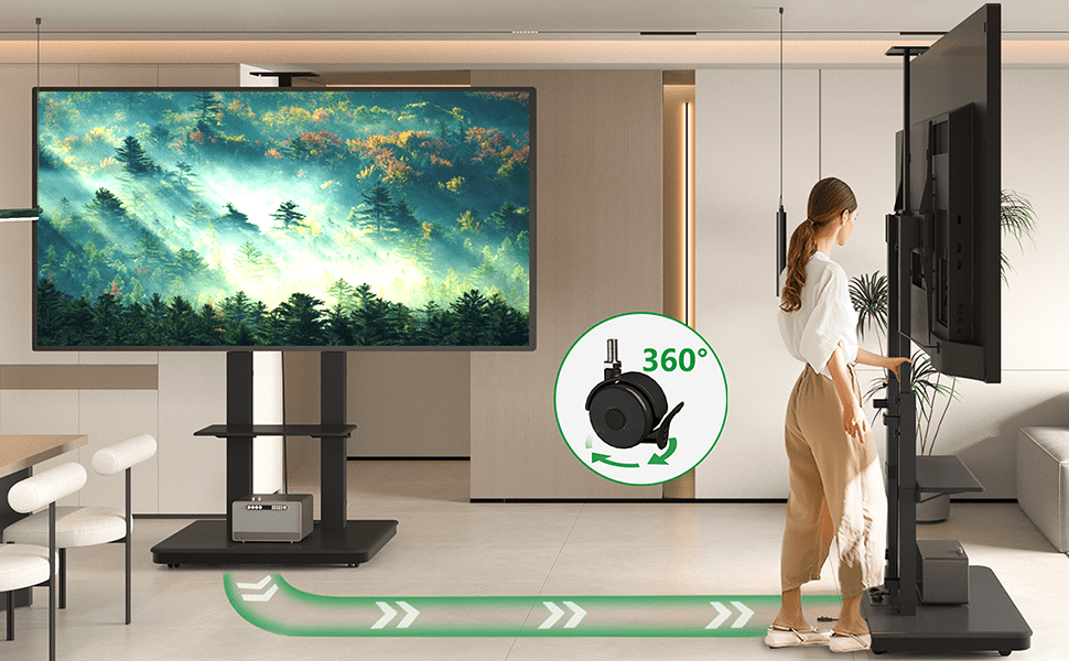 XTRARM Duolite Mobiler TV Ständer Schwarz - Mobiler TV Bodenständer für große und schwere TV Geräte