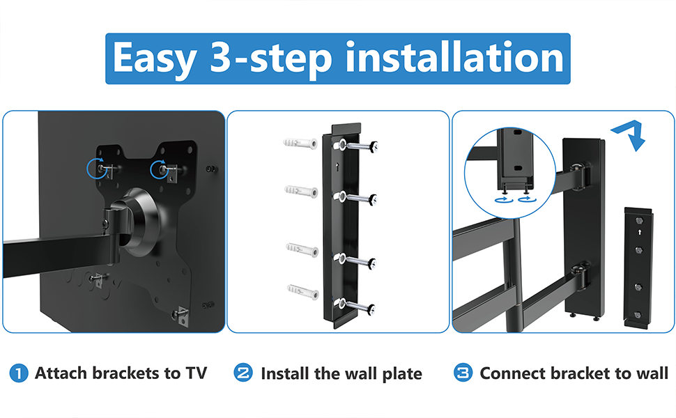 Bitte beachten Sie, dass die Montage einer Halterung mit Gelenkarm eine gewisse Vorsicht erfordert! Es muss mit Schrauben und Dübeln, die der Beschaffenheit der Wand angepasst sind, an einer stabilen Wand befestigt werden.