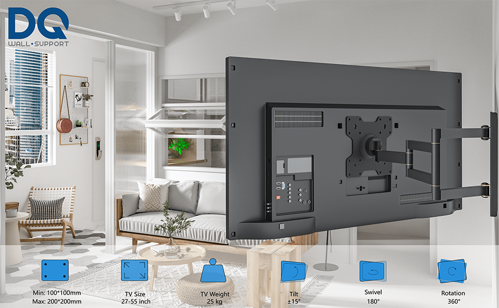 DQ WALL-SUPPORT Rotate XL 70 cm Schwarz TV Wandhalterung - Wandhalterung mit enorm großem Wandabstand