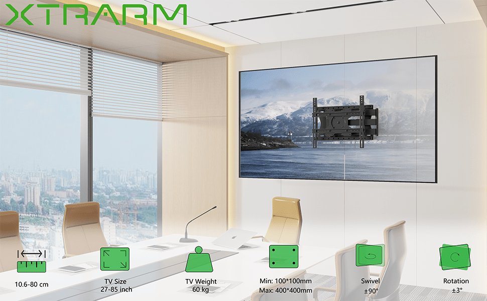 Das herausragendste Merkmal dieser Halterung ist ihre außergewöhnliche Länge von 80 cm , die einen großen Bewegungsspielraum und einen einfachen Zugriff auf die Anschlüsse Ihres Fernsehers ermöglicht. Mit einer maximalen VESA-Größe von 400 x 400 mm ist sie mit nahezu allen Fernsehmarken und -modellen kompatibel.