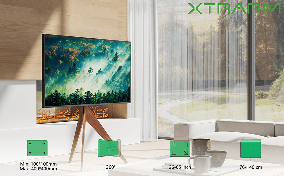 Der XTRARM Argo Tripod TV Ständer eignet sich auch für größere Geräte, die den angegebenen VESA-Maßen folgen.