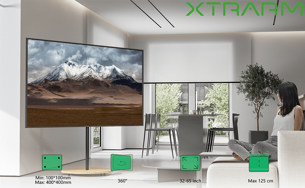 Der XTRARM Arius TV Ständer eignet sich auch für größere Geräte, die den angegebenen VESA-Maßen folgen.