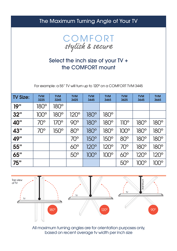 Suchen Sie nach einer sicheren, schwenkbaren Halterung für Ihren empfindlichen OLED-Fernseher? Ein Ständer, der perfekt zum minimalistischen Design Ihres Fernsehers passt? Wir stellen vor: die elegante COMFORT Full-Motion+ TV-Halterung. Diese Halterung wurde speziell für OLED-Fernseher von 40 bis 77 Zoll und mit einem maximalen Gewicht von 35 kg entwickelt. Es lässt sich um bis zu 180° drehen. Auf diese Weise können Sie Ihren wunderschönen OLED-Fernseher mühelos von überall im Raum aus genießen. Ihr OLED-Fernseher hat einen empfindlichen Bildschirm. Es ist extrem dünn. Deshalb haben wir darauf geachtet, dass sich die COMFORT Full-Motion+ TV-Halterung extrem leichtgängig dreht. Dank unserer One-Finger™ Movement-Technologie können Sie Ihr OLED-Display mit nur einem Finger in die gewünschte Position drehen. Möchten Sie wissen, wie weit Sie Ihren OLED-Fernseher drehen können? Geben Sie auf dieser Seite Ihr TV-Modell ein und unser Tool berechnet sofort den tatsächlichen Schwenkwinkel. Ihr OLED-Fernseher verfügt über ein wunderschönes, minimalistisches Rahmendesign. Das Design dieser Stütze passt perfekt dazu. Weiche Polster schützen die Rückseite Ihres Fernsehers beim Anbringen. Das exklusive TiltAnchor™-System sorgt für eine sichere Verankerung Ihres Fernsehers: Dank des optimalen Betrachtungswinkels eines OLED-Fernsehers ist kein Neigen erforderlich. Um die COMFORT Full-Motion+ TV-Halterung zu installieren, müssen Sie kein Profi sein. Im Lieferumfang sind eine Bohrlehre, Schrauben, Fischer® DuoPower-Dübel, Kabelbinder und eine Wasserwaage enthalten. Das erste Bohrloch können Sie ganz einfach mit unserer kostenlosen DrillRight™ AR-App bestimmen.