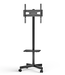 Mit Hilfe feststellbarer Rollen lässt sich der Ständer einfach und schnell verschieben. Das TV-Gerät kann auf 3 unterschiedlichen Höhen befestigt werden. Zusätzlich bietet die Ablage, die ebenfalls auf unterschiedlichen Höhen montiert werden kann, Platz für Audio- und Video-Geräte.