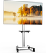 XTRARM Proton 500 mobiler TV Ständer Schwarz / Silber - mobiler höhenverstellbarer TV-Ständer mit Ablage